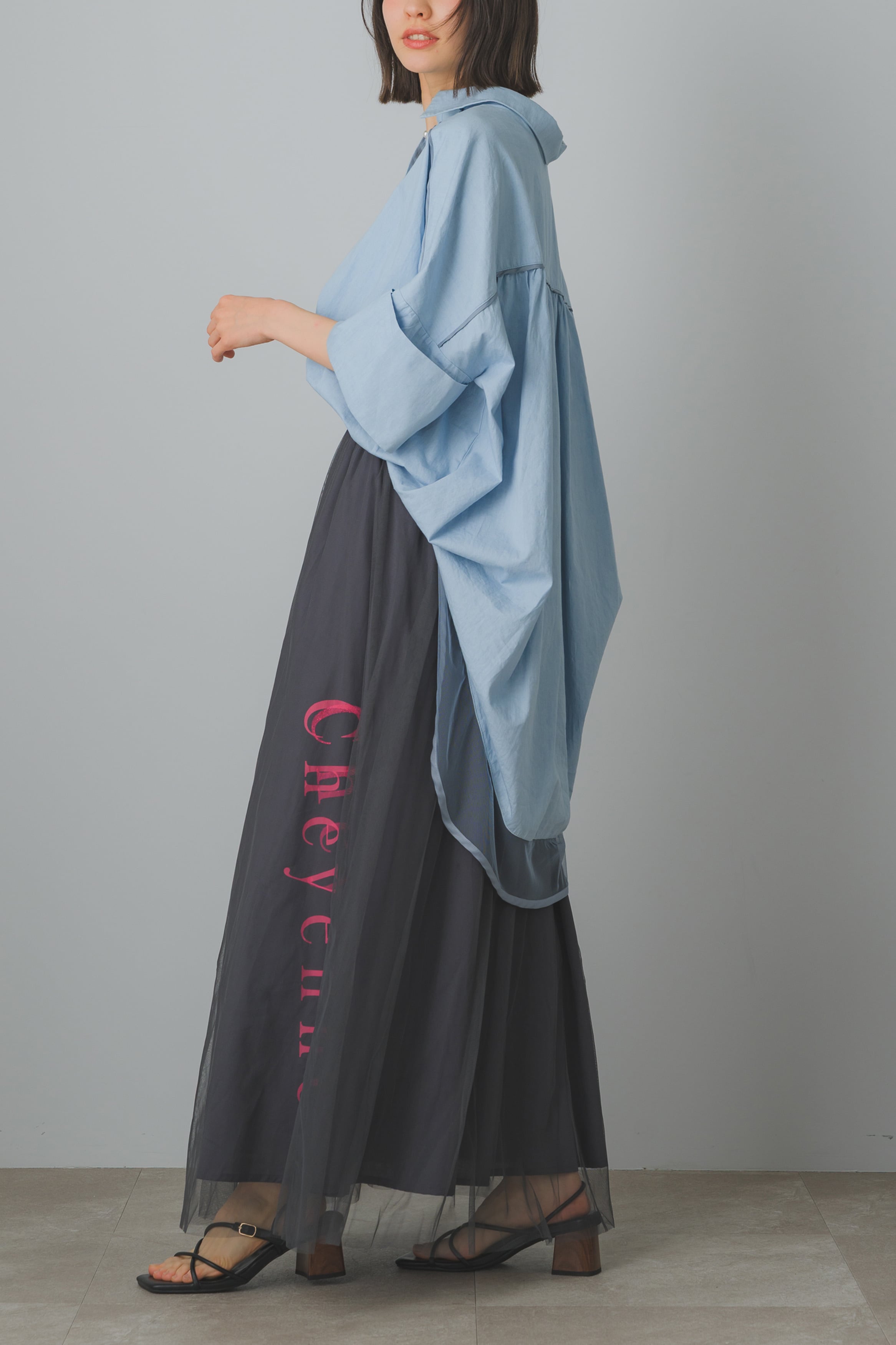 軽やかなチュール素材を使用し、ウエストは総ゴム仕様となっているため、