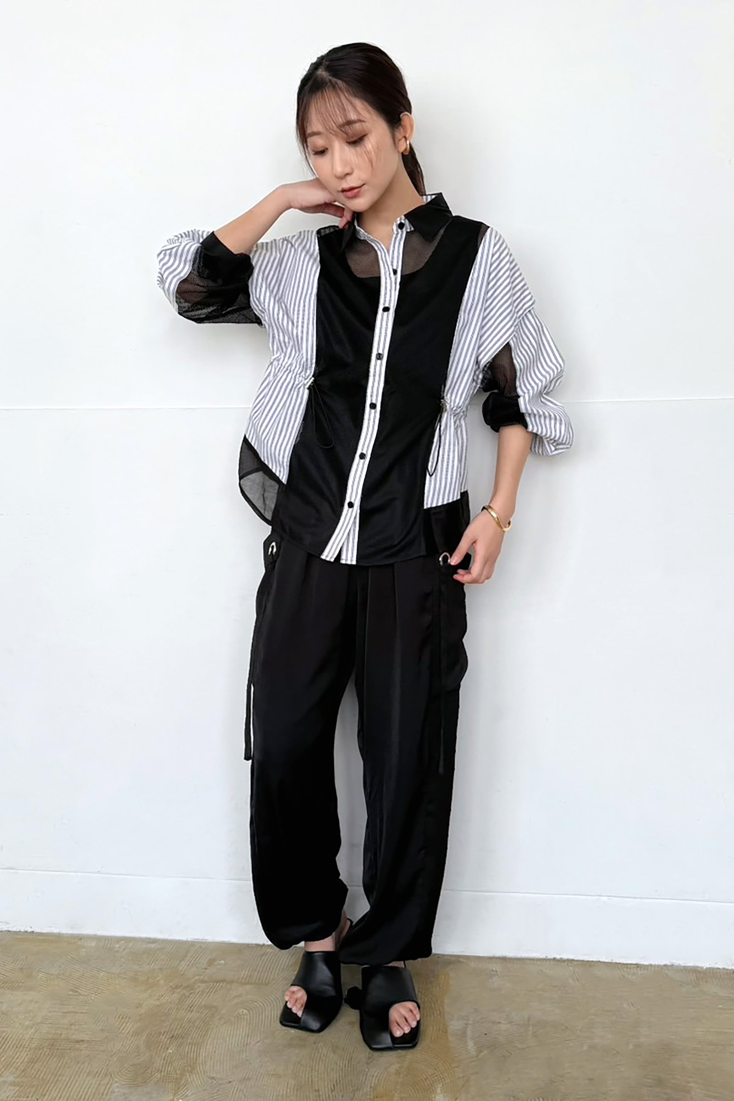 ウエスト部分にはドローストリングを施し、