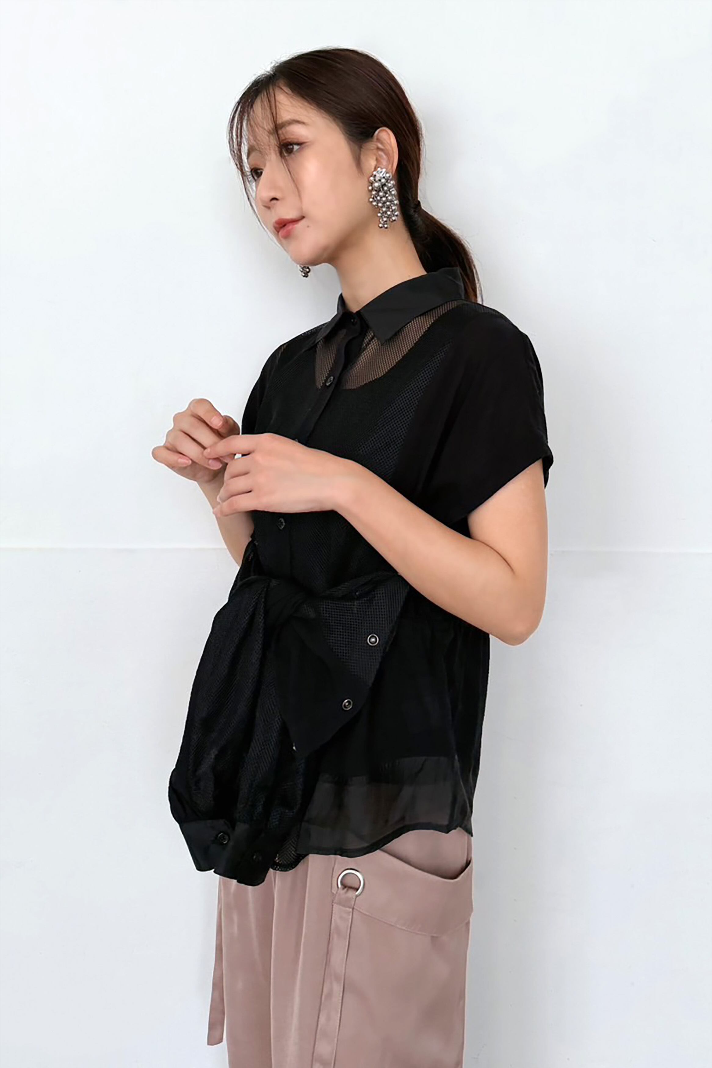 袖ありではカジュアルにシャツスタイルに早変わり。