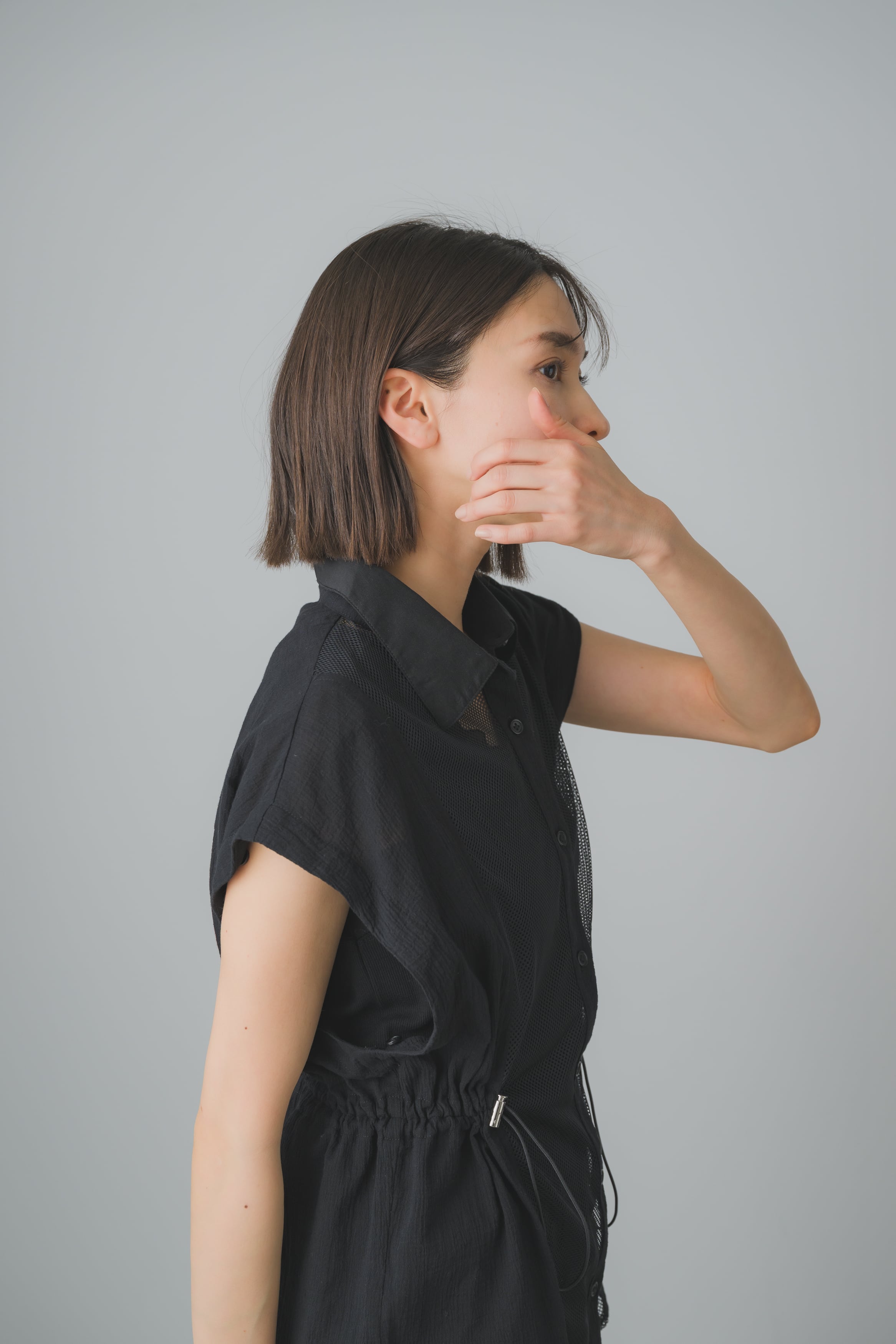 異素材のメッシュとシアー素材を組み合わせた、