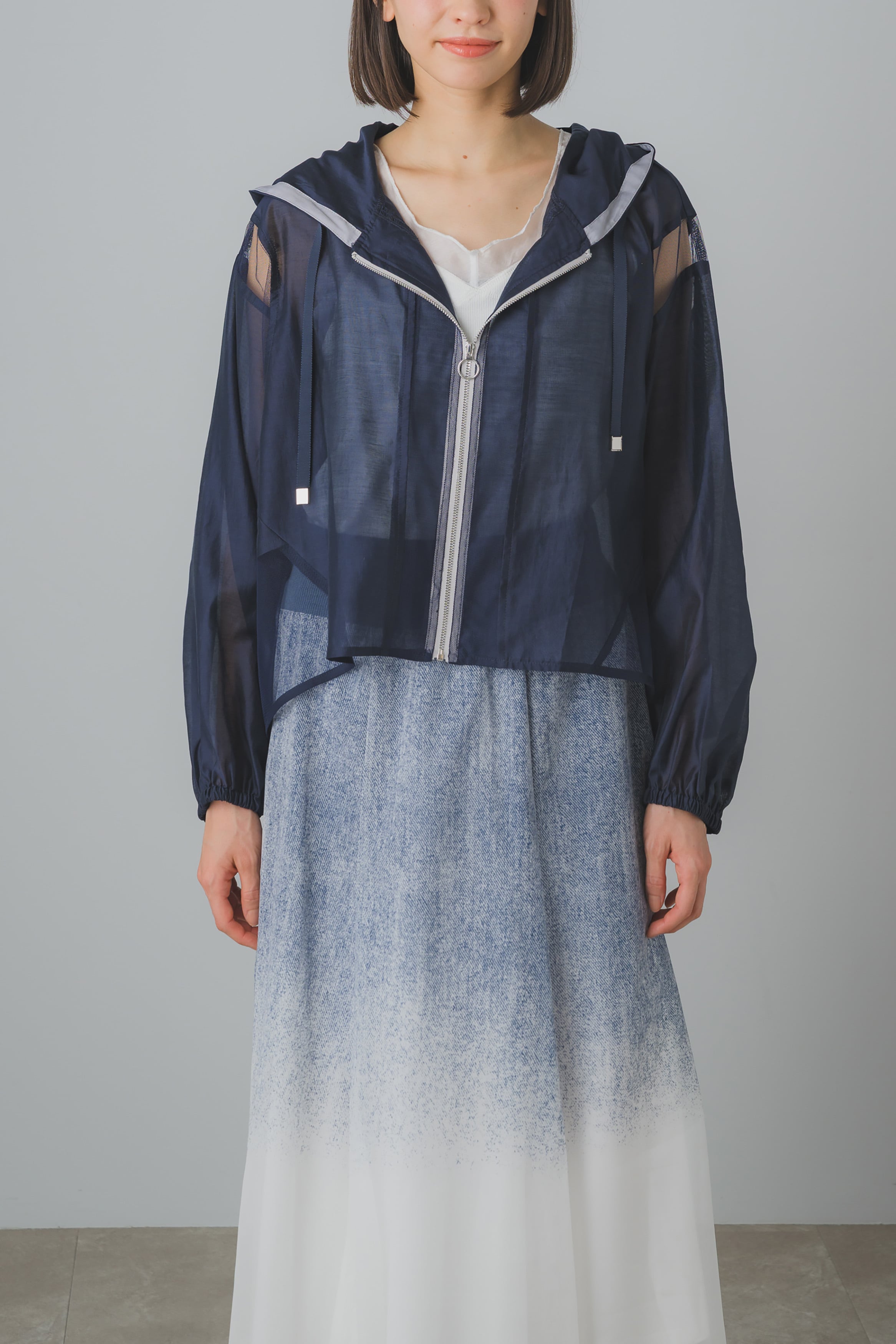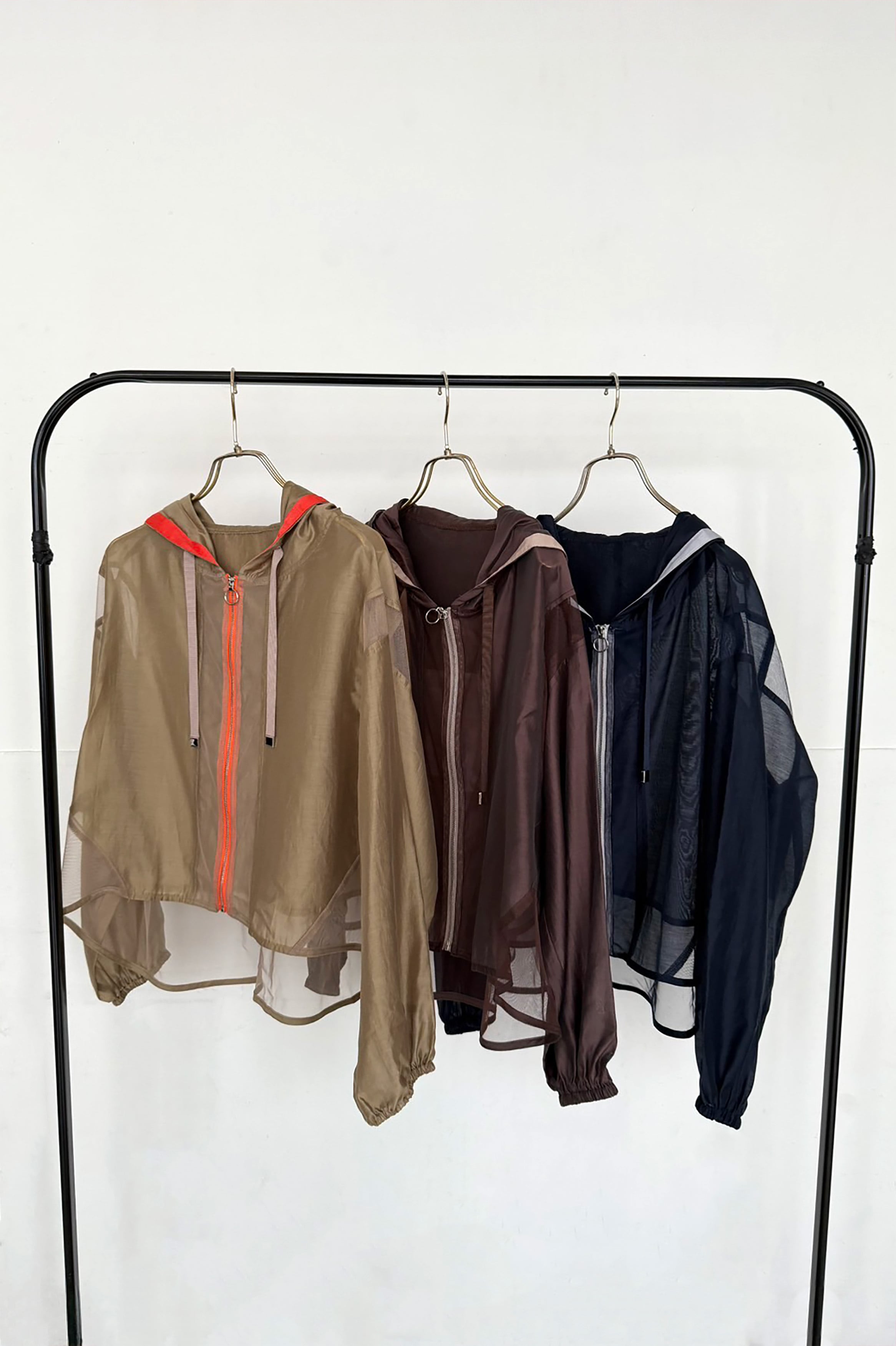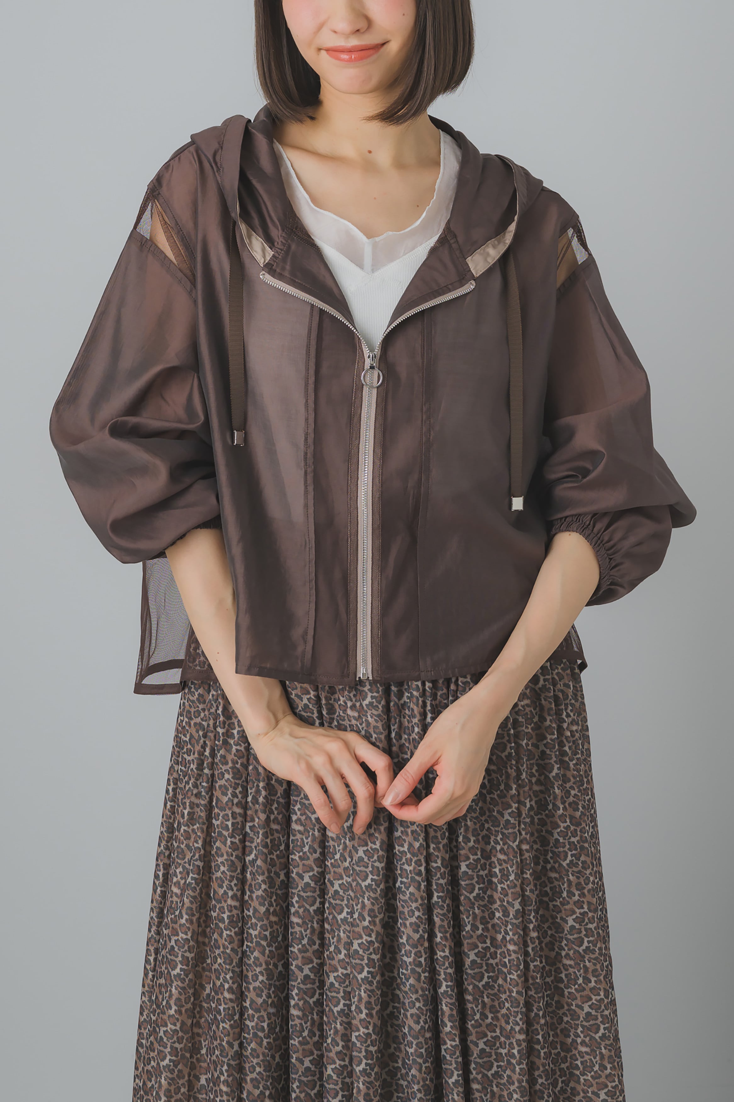 まだまだ暑い初秋から季節感を演出できるシアー切り替えパーカー。
