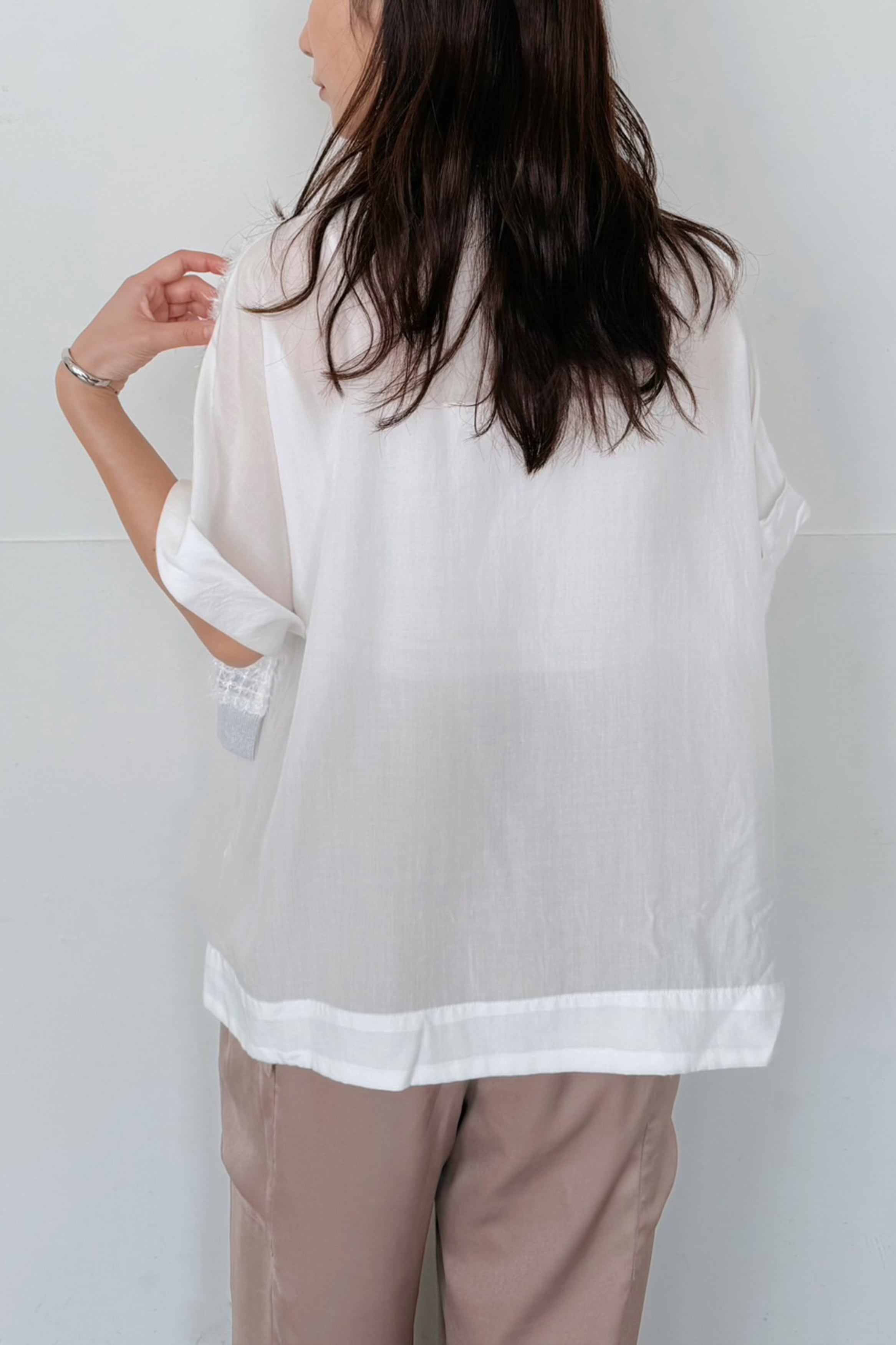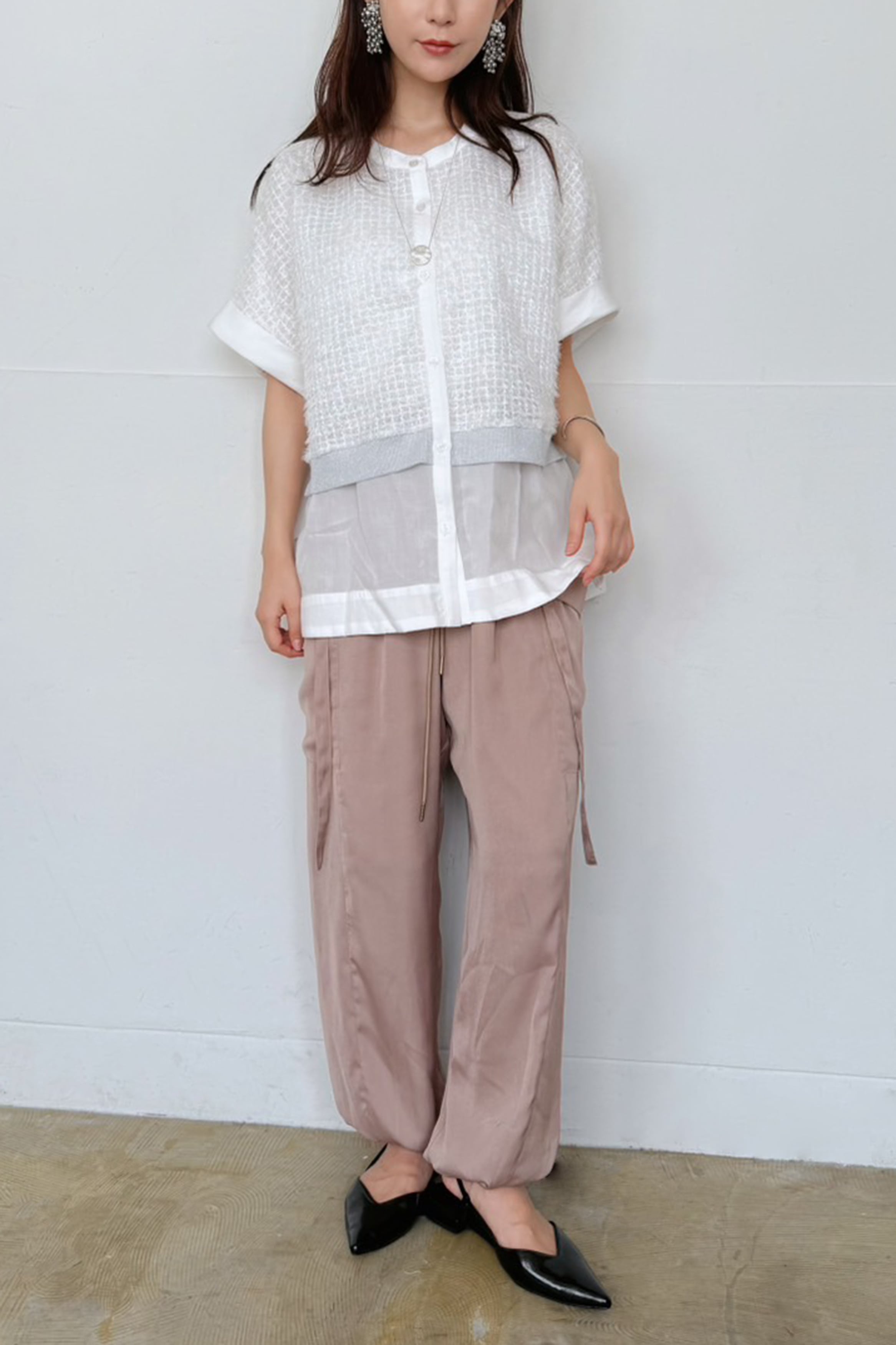 繊細なラメ糸を織り込んだフェザー調の生地が、