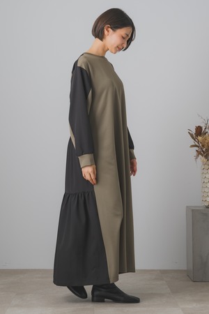 2配色の切り替えで、振り返るとティアードの裾がさりげなく揺れ、