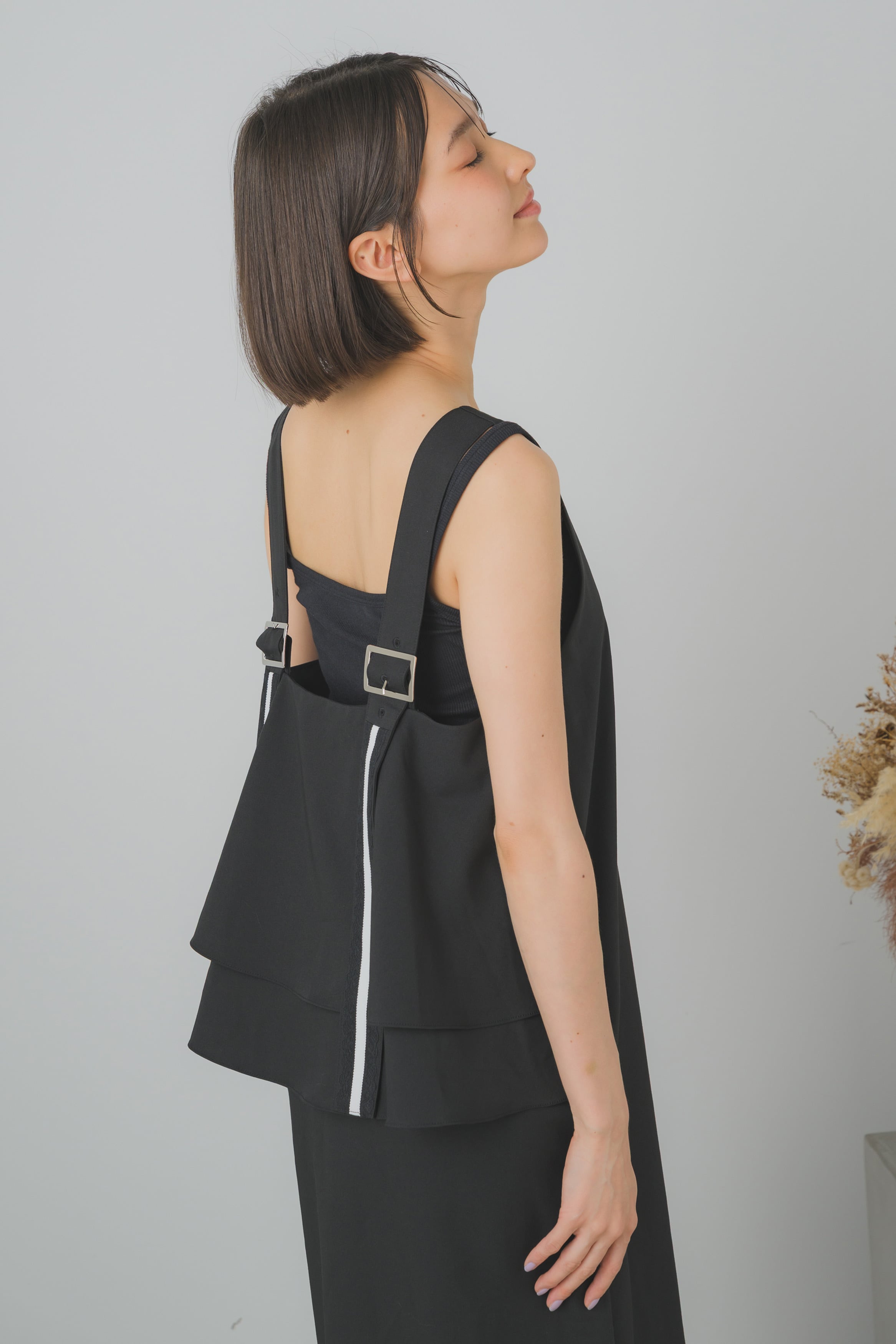 太めのショルダーベルトにはバックルとラインテープをあしらい、