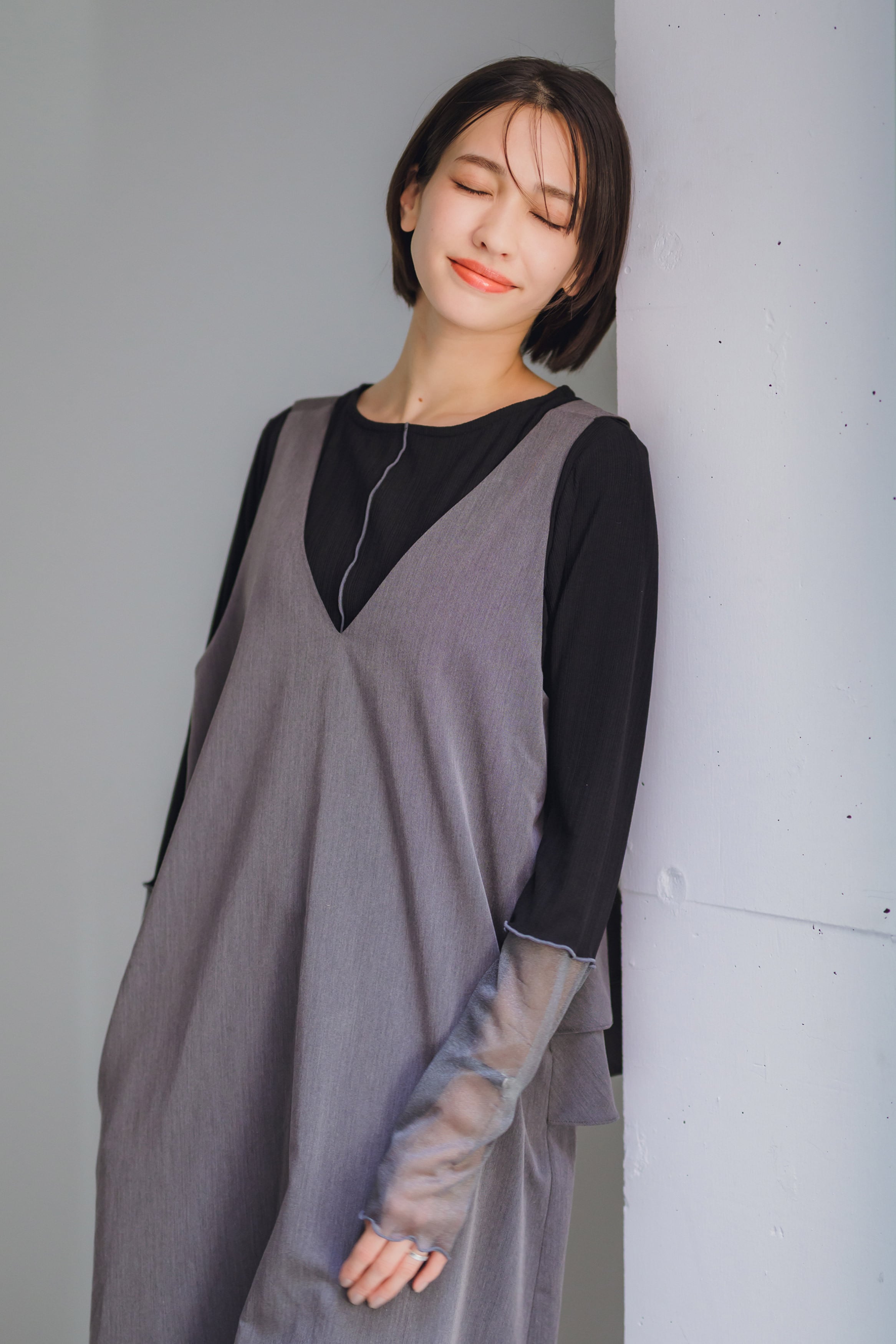 カットソーやタートルを重ねて、季節を問わず楽しめます。