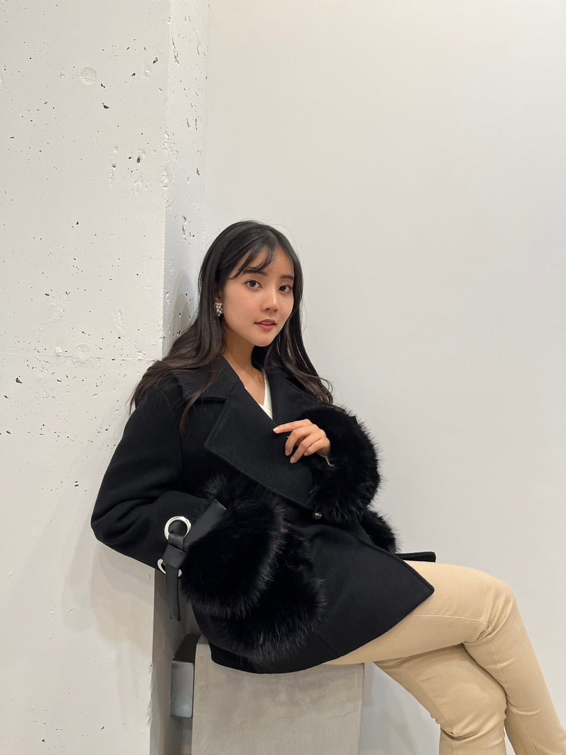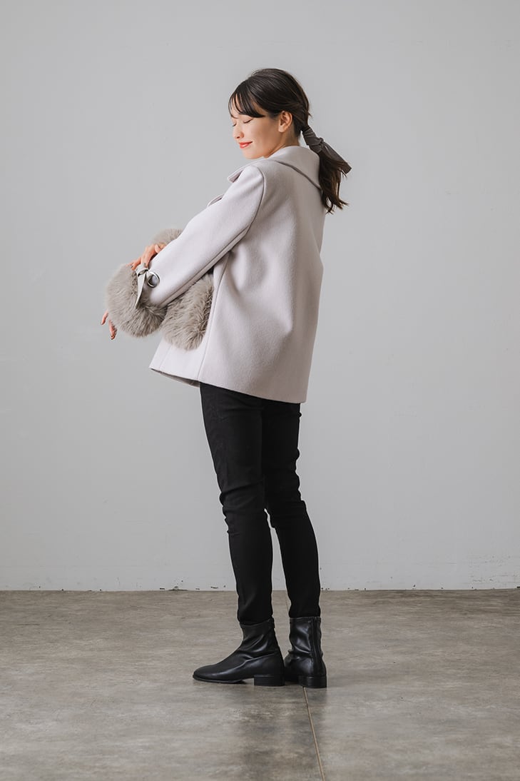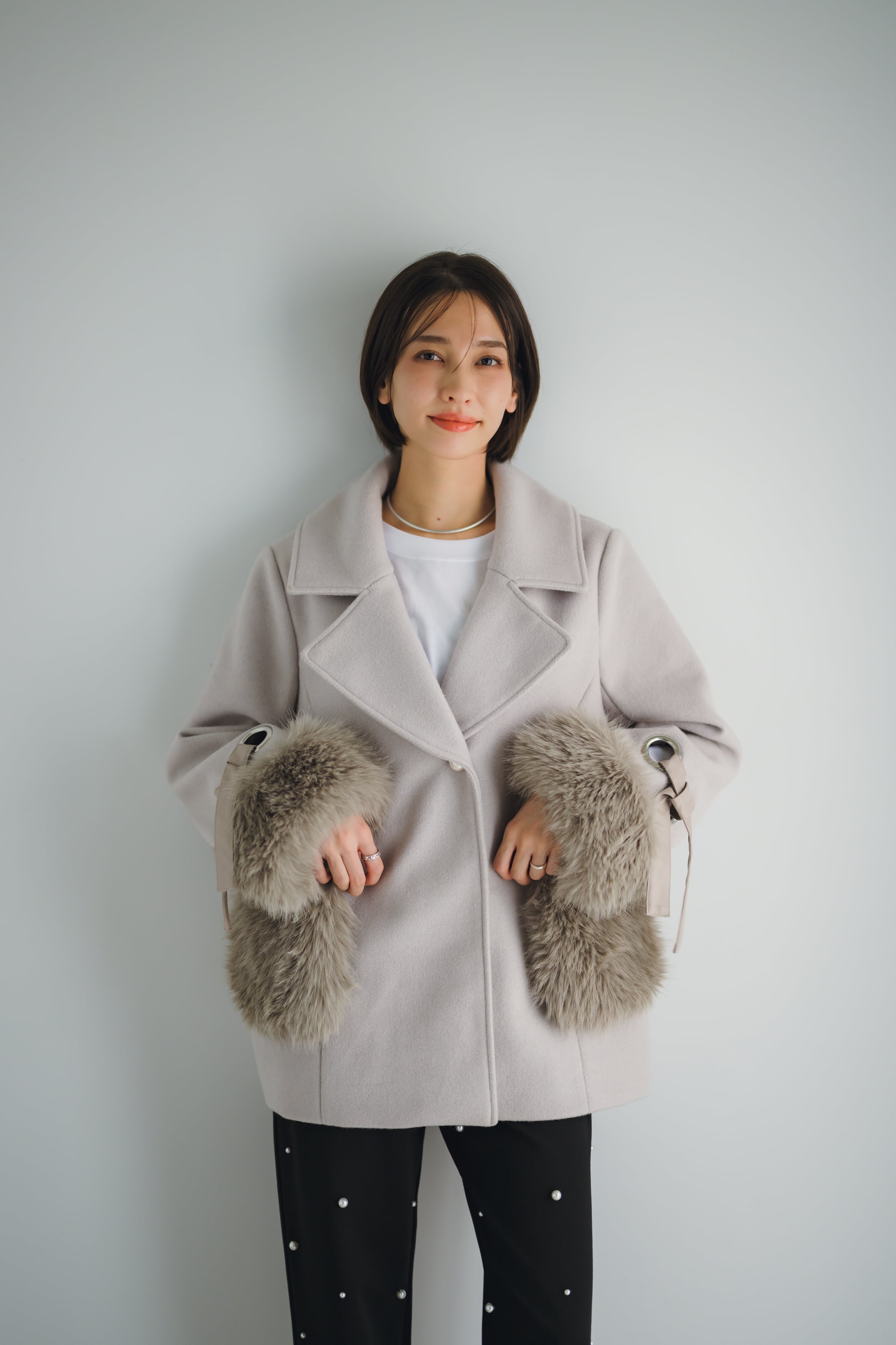 ふわふわのポケットファーと可愛らしい袖口リボンが