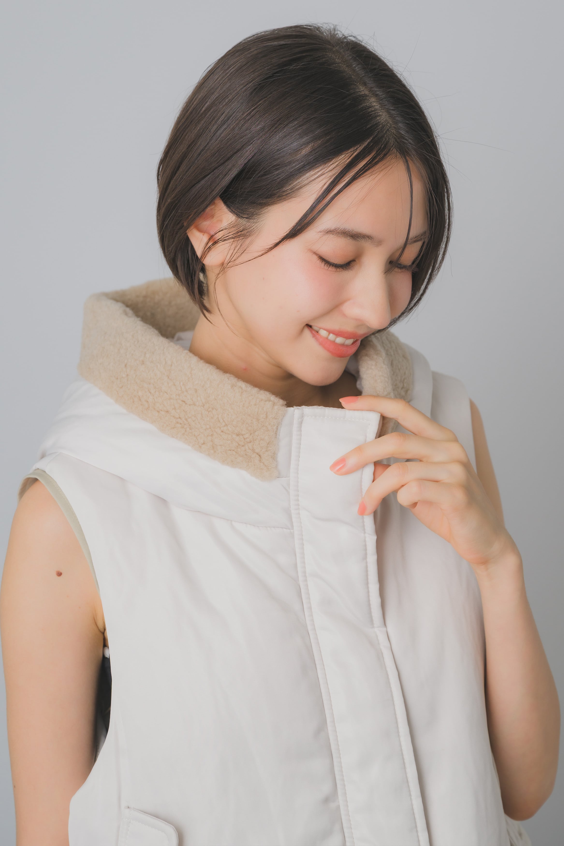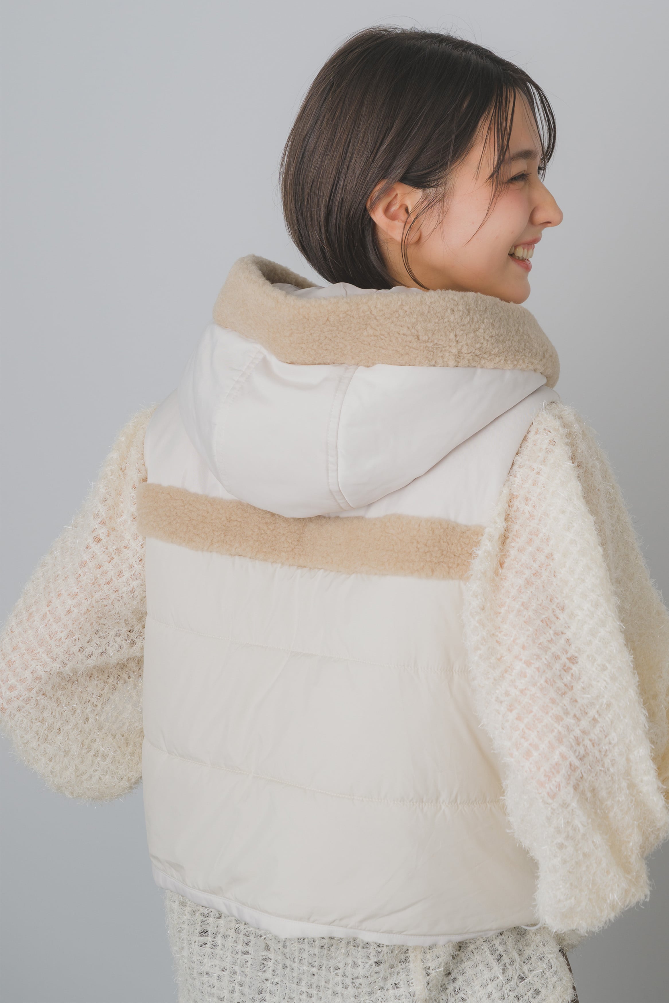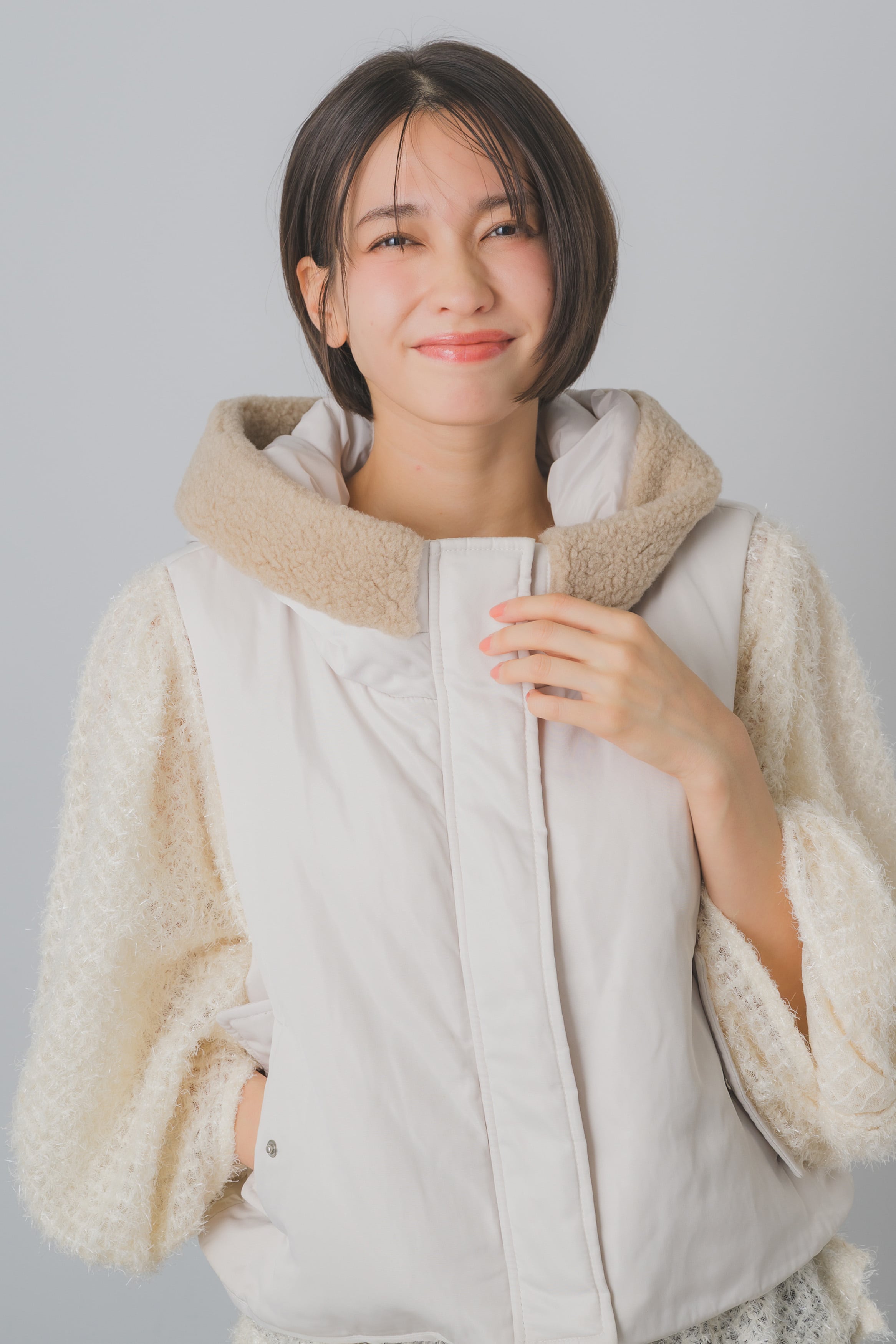 ショート丈のシルエットとボア素材のコンビネーションで、
