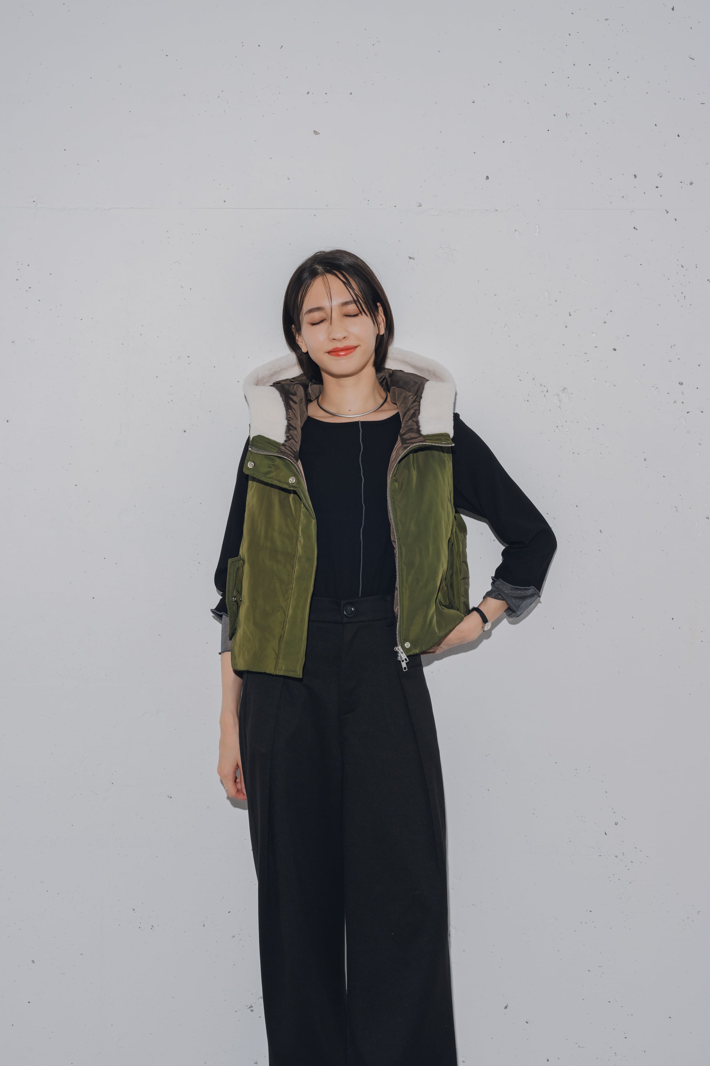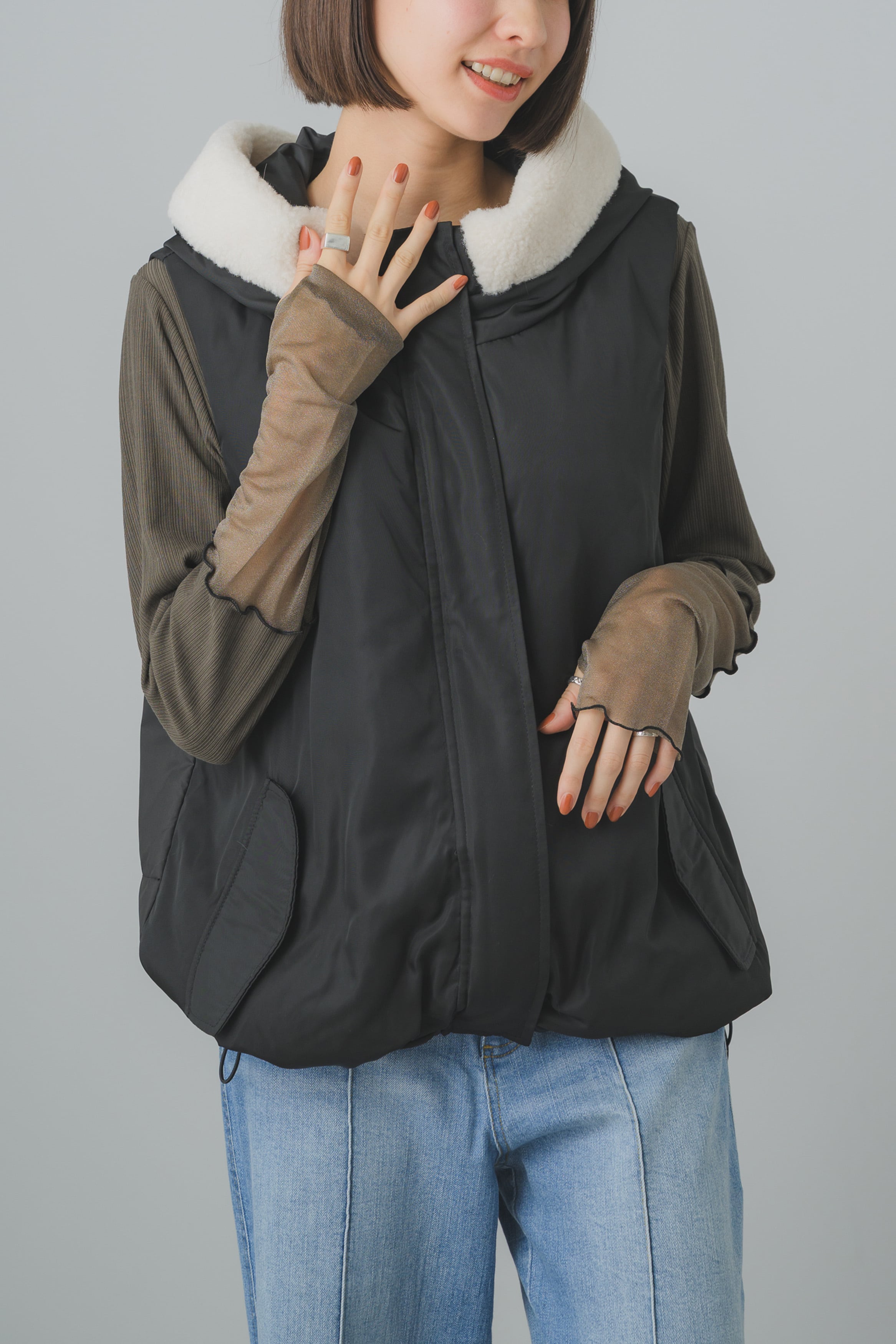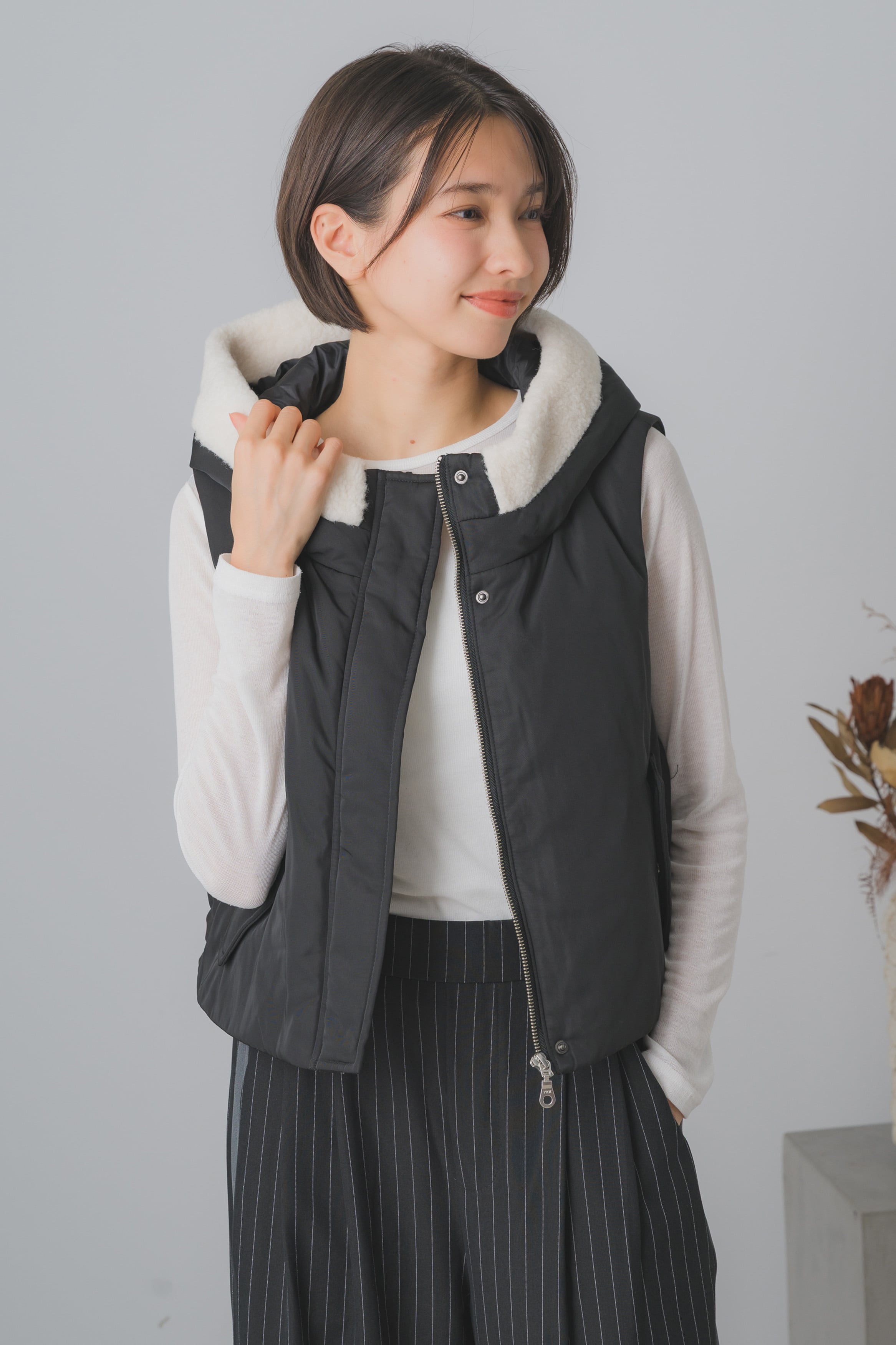 ショート丈のシルエットとボア素材のコンビネーションで、