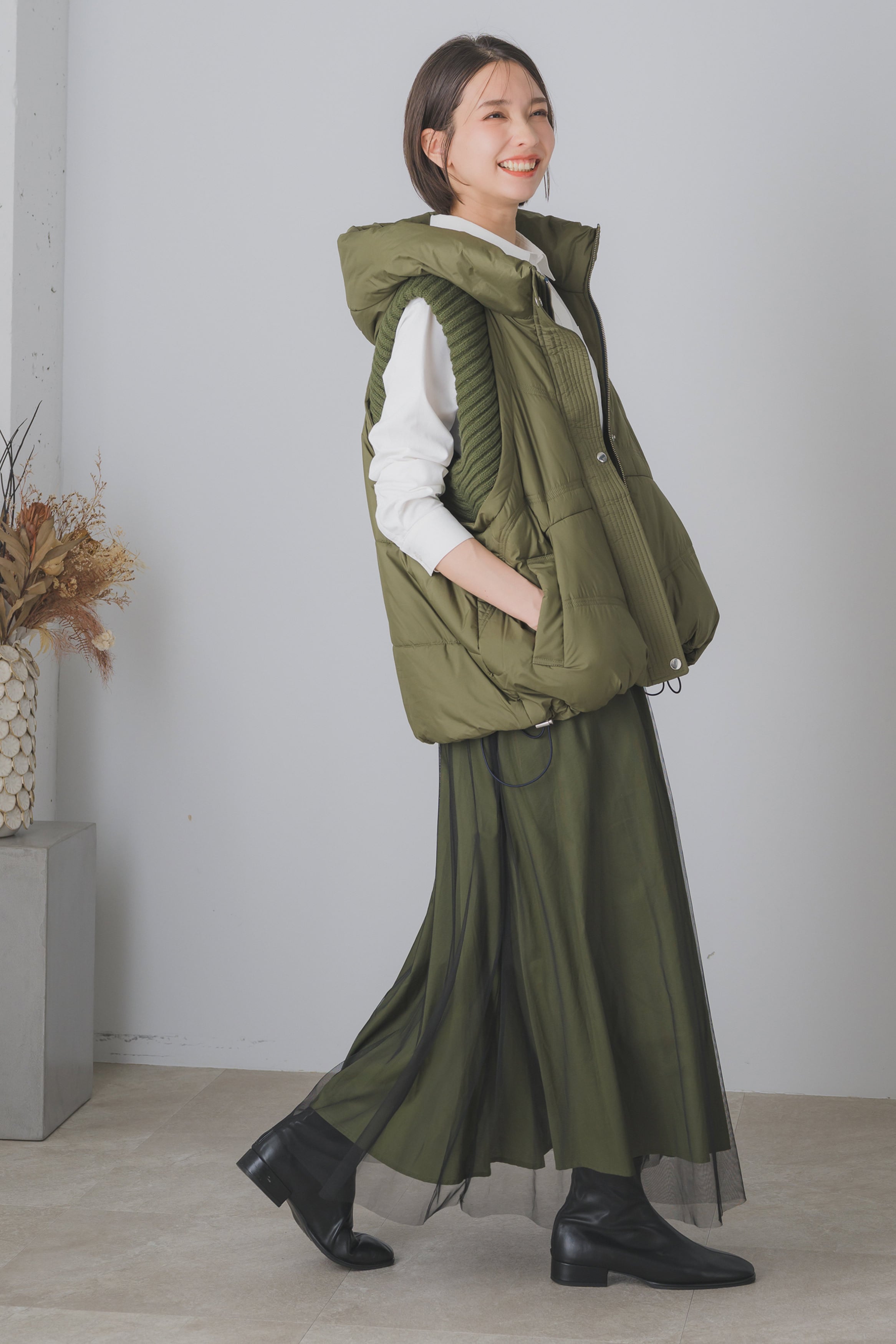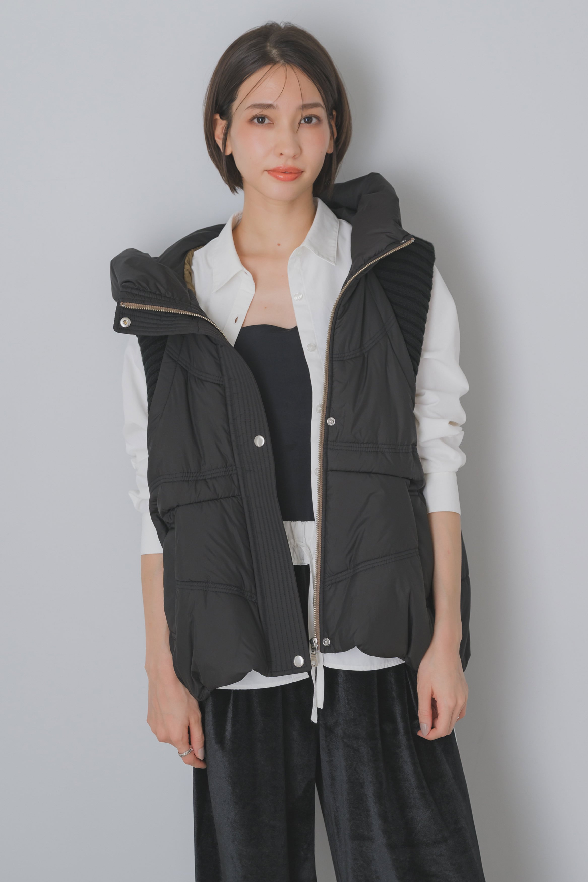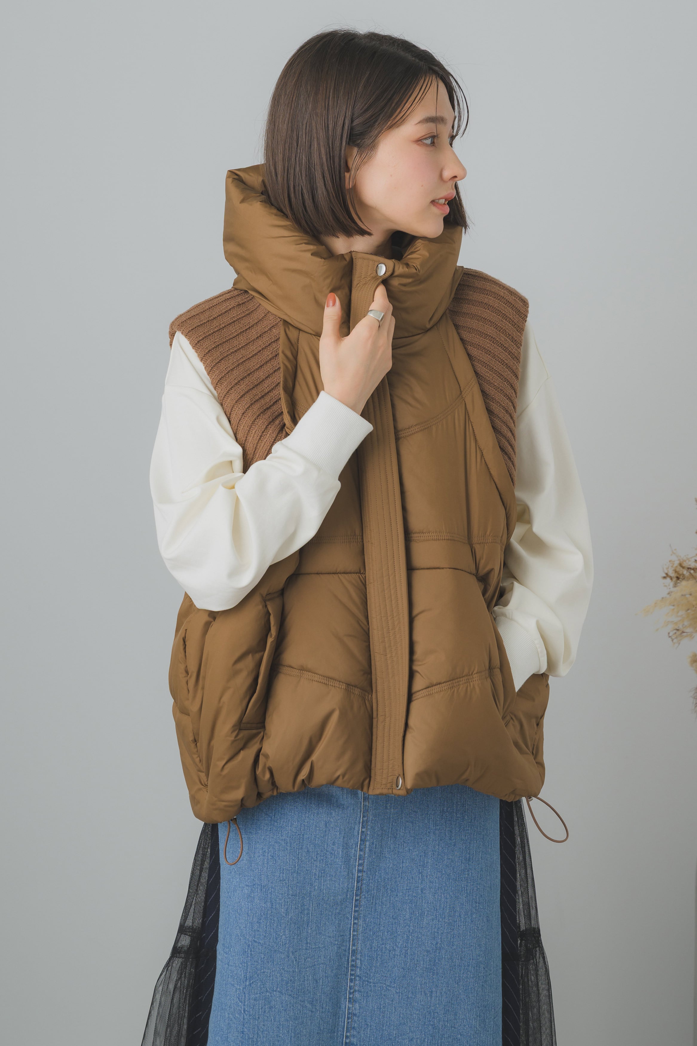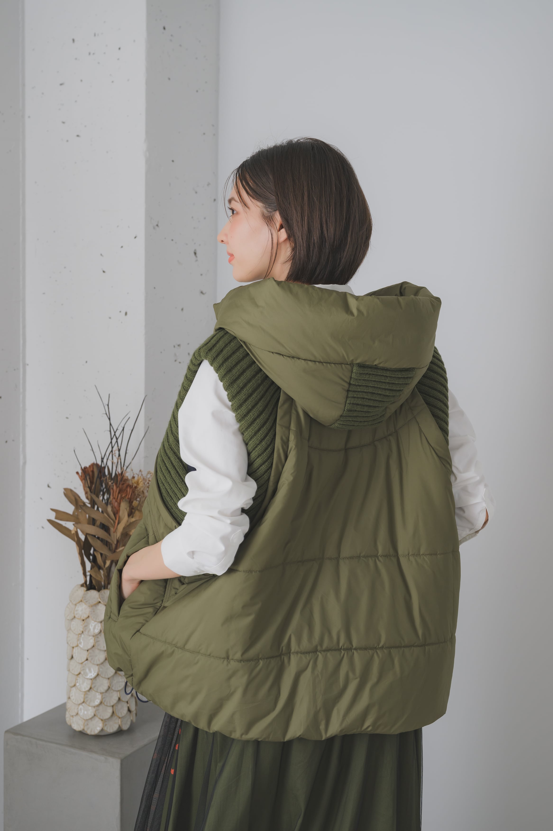 ニットコンビベストは、柔らかいニット素材と異素材の