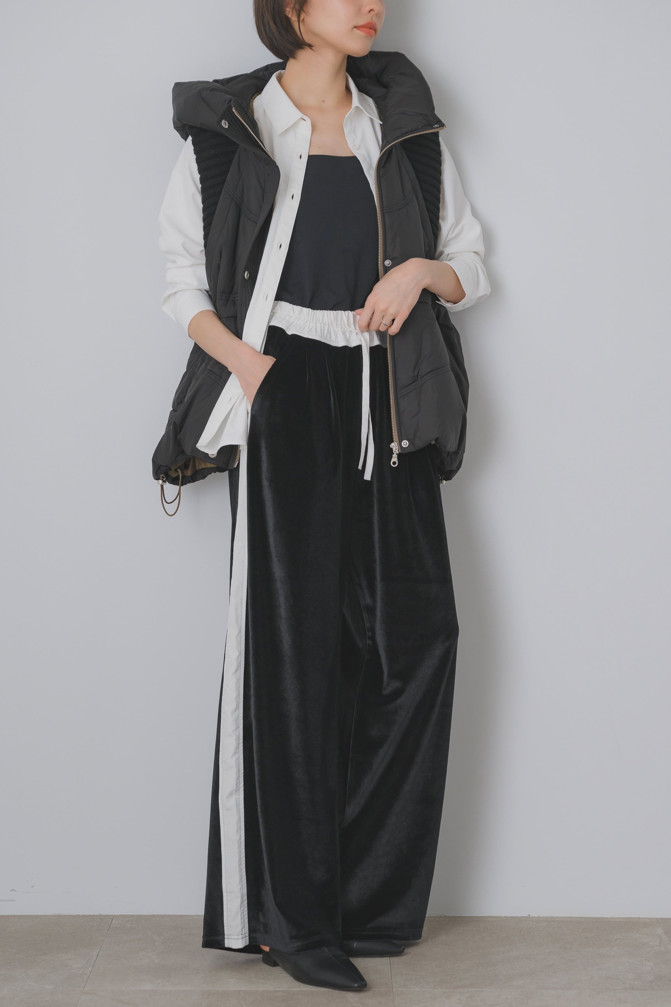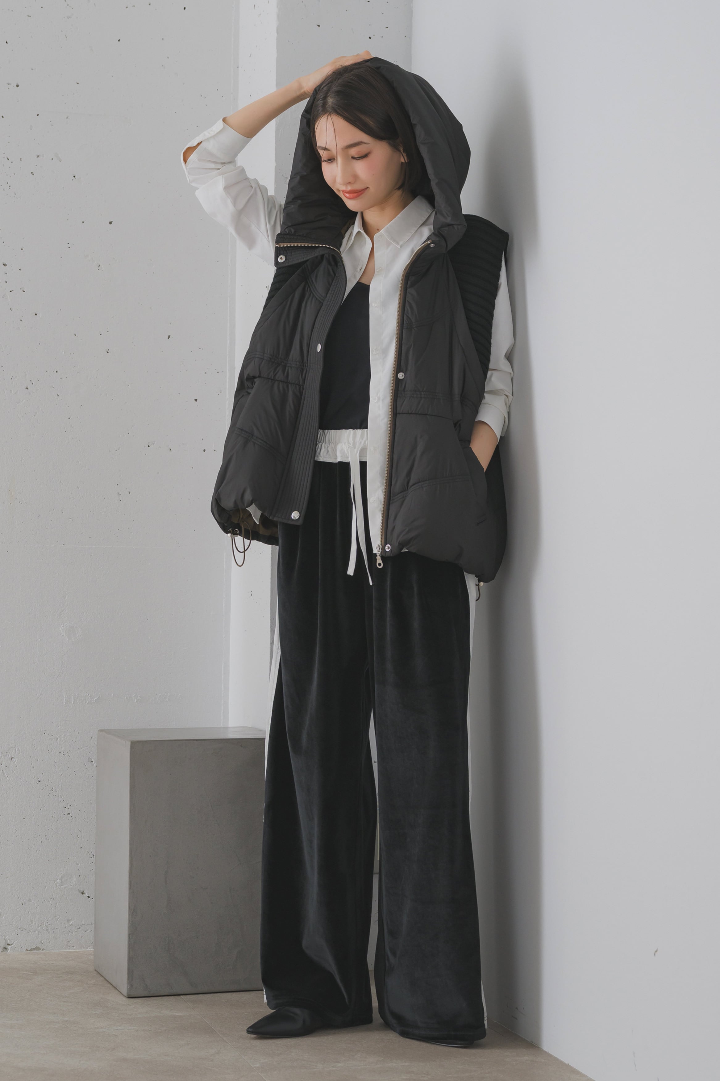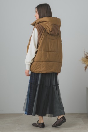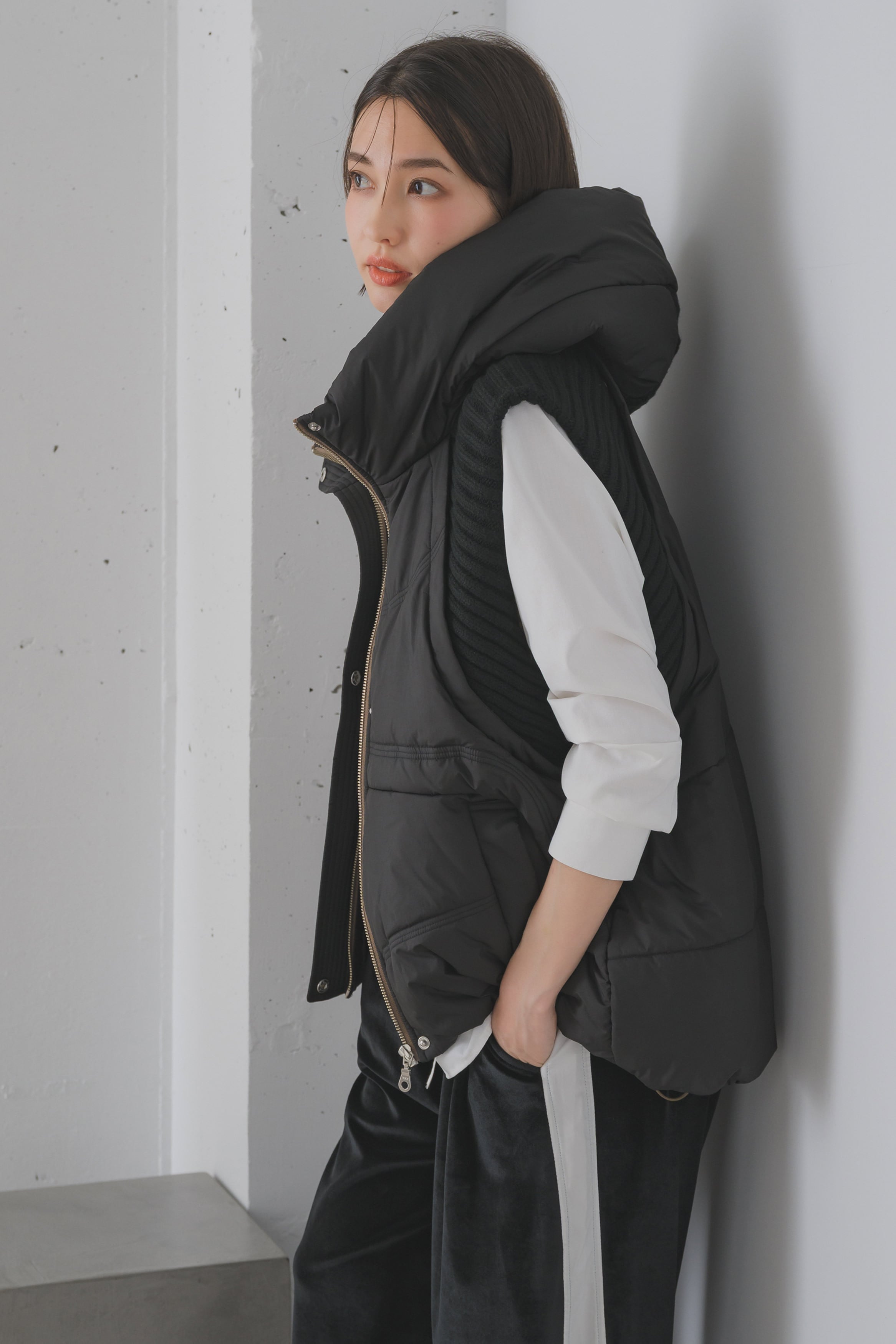 ニットコンビベストは、柔らかいニット素材と異素材の