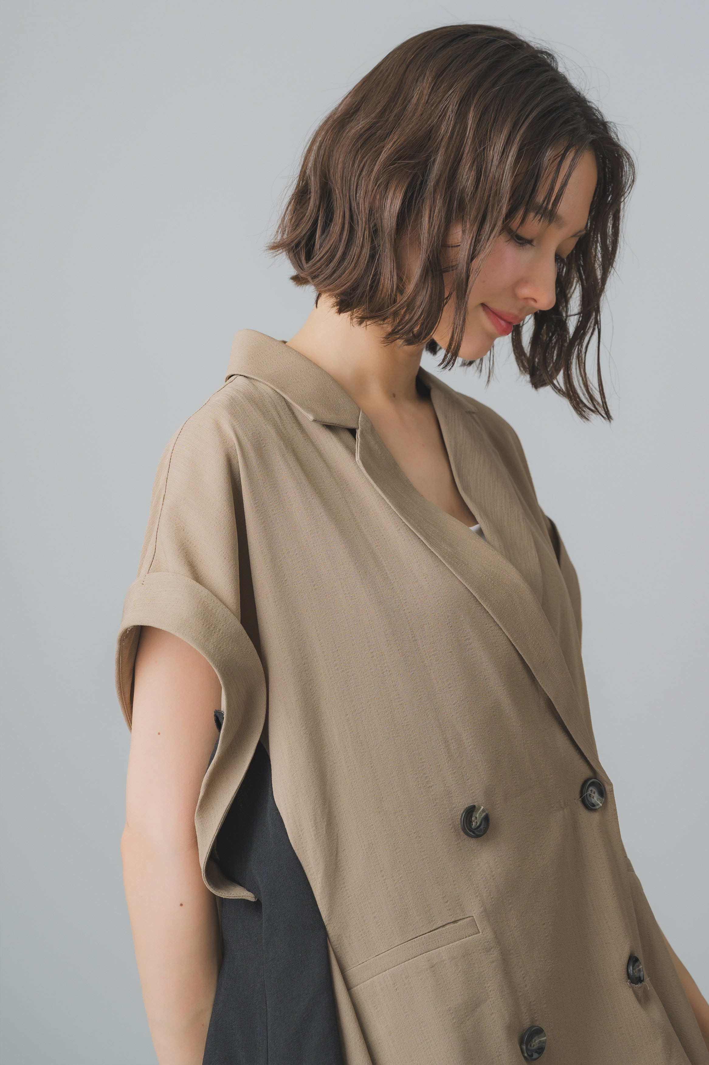 サイドフリルショートスリーブジャケット。