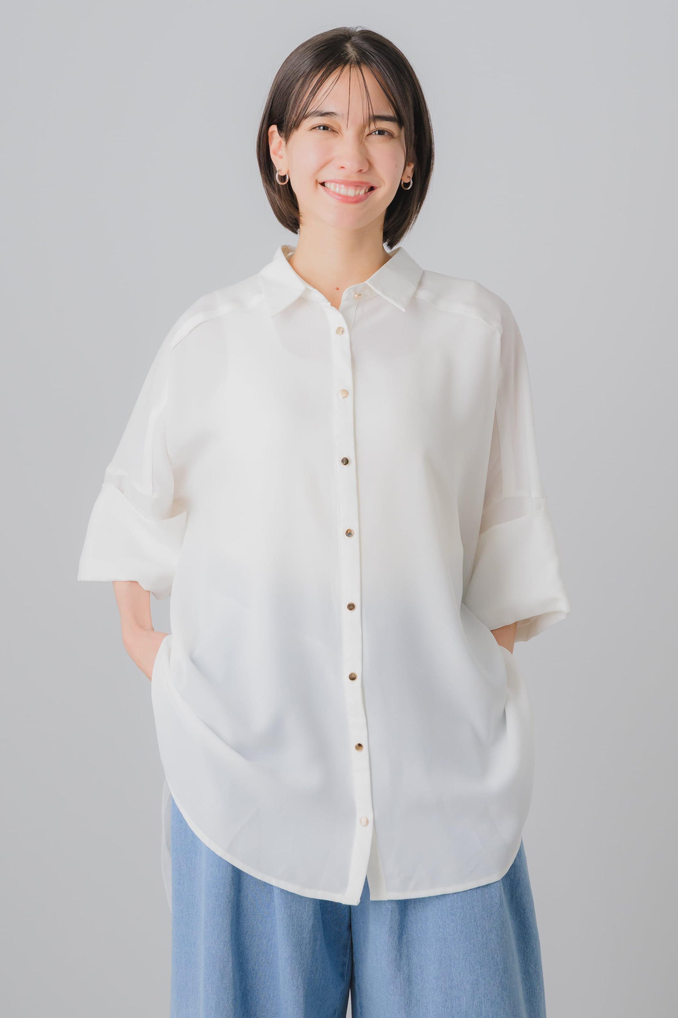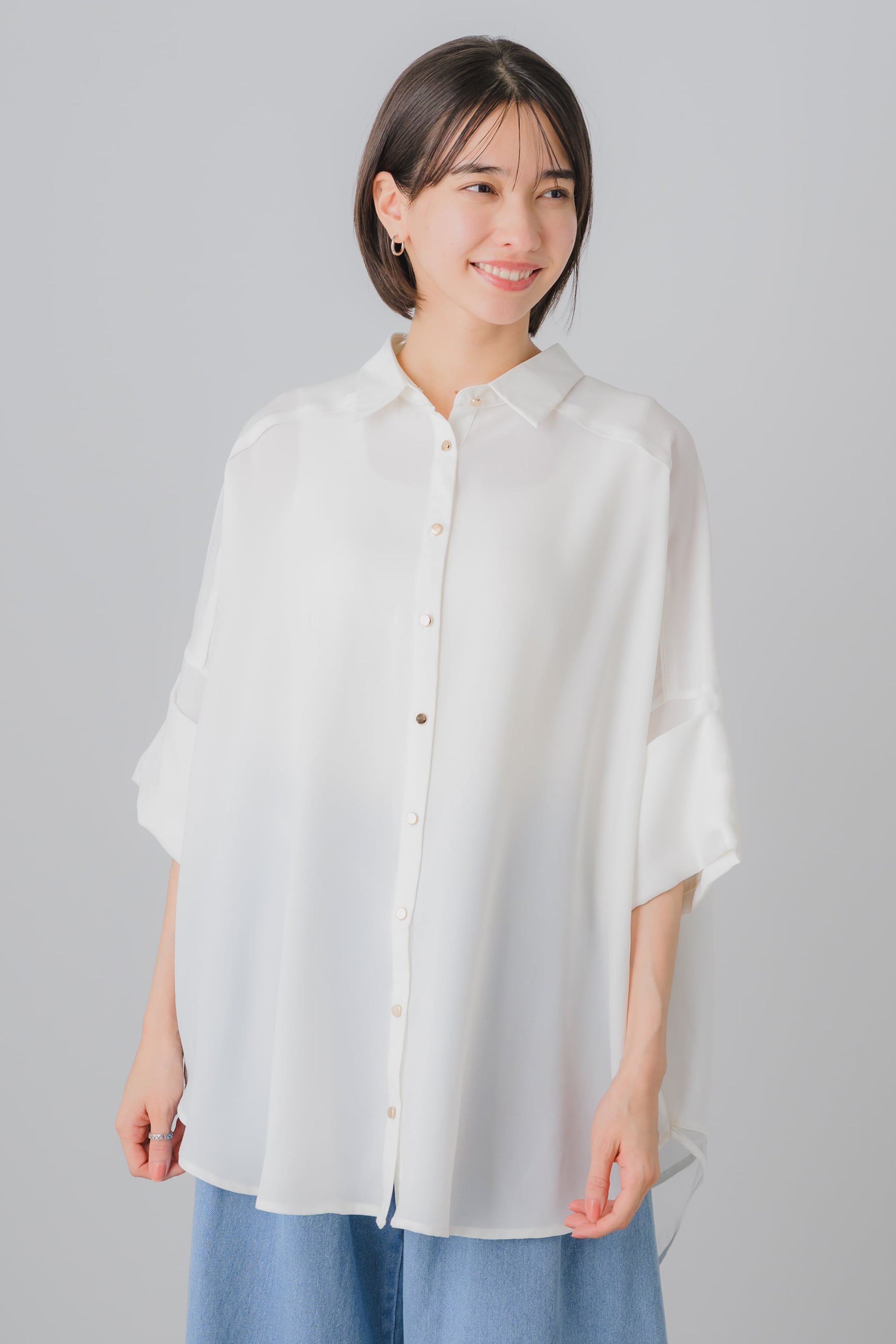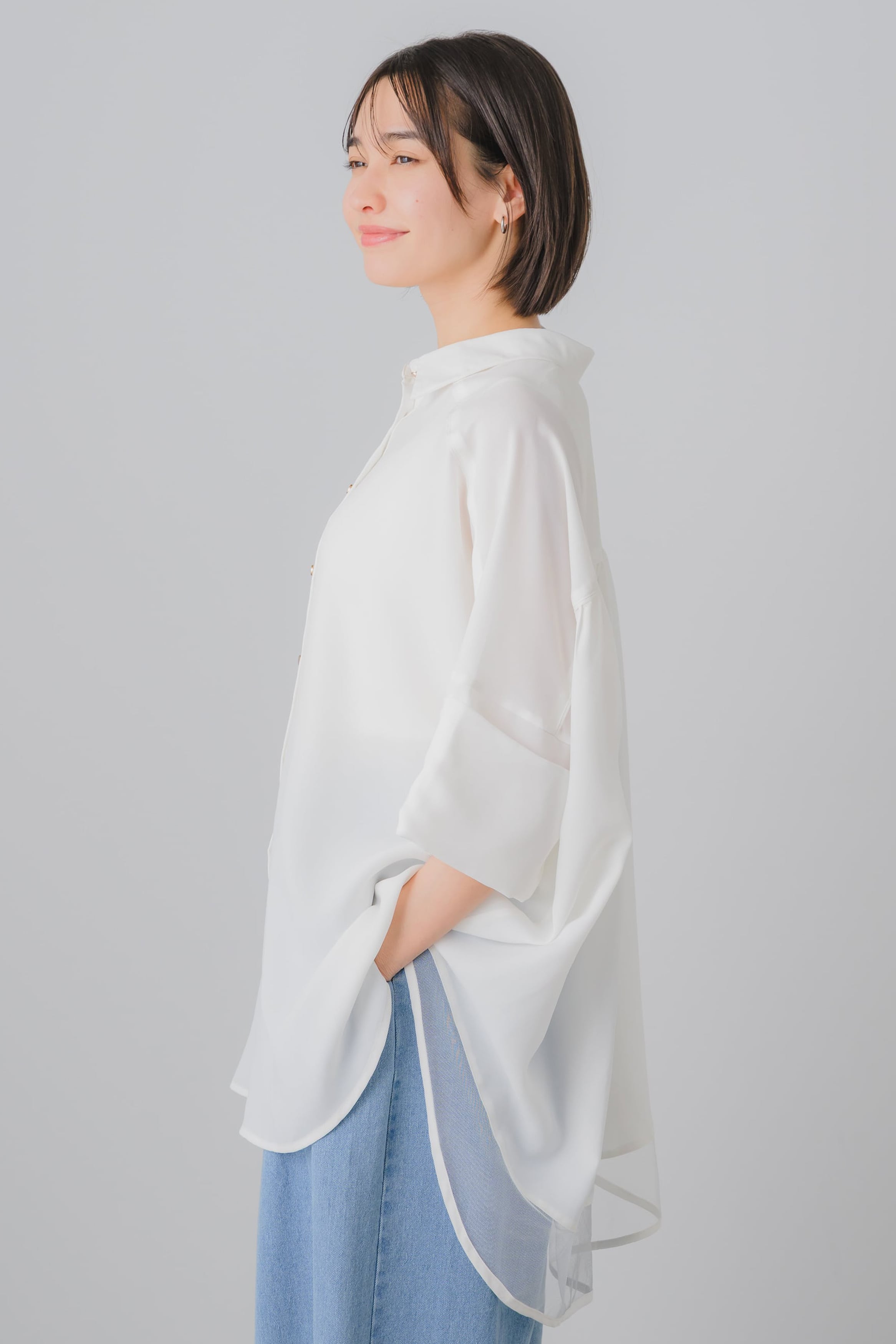 上質なジョーゼット素材を使用した、サイズレスなジョーゼットサークルシャツ。