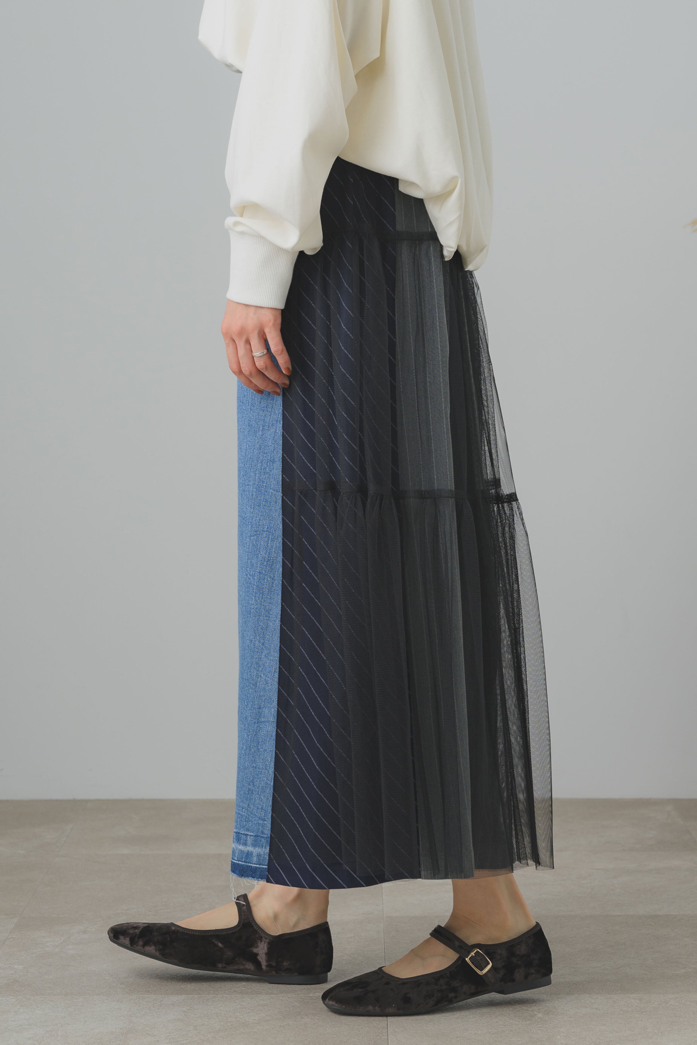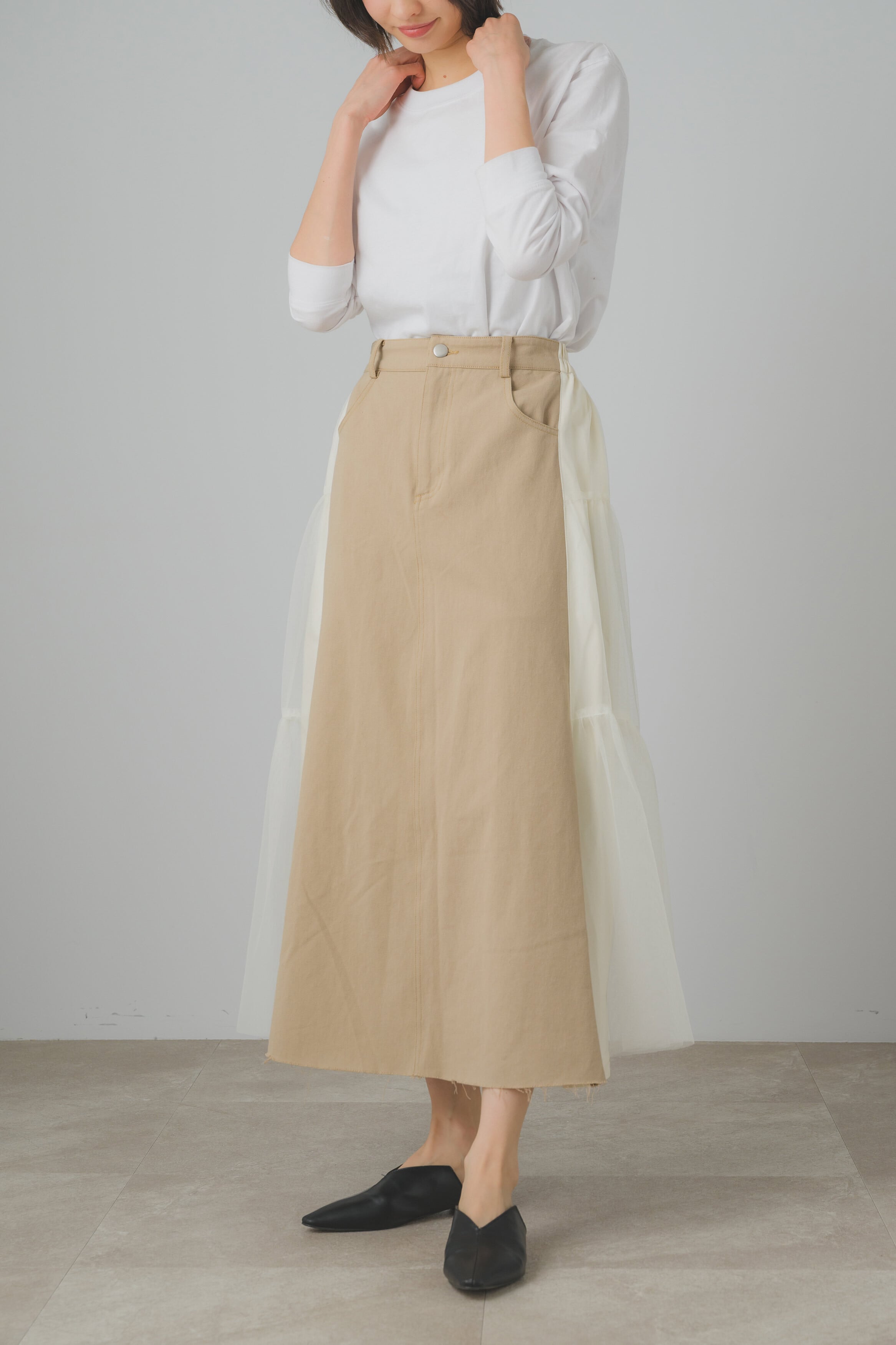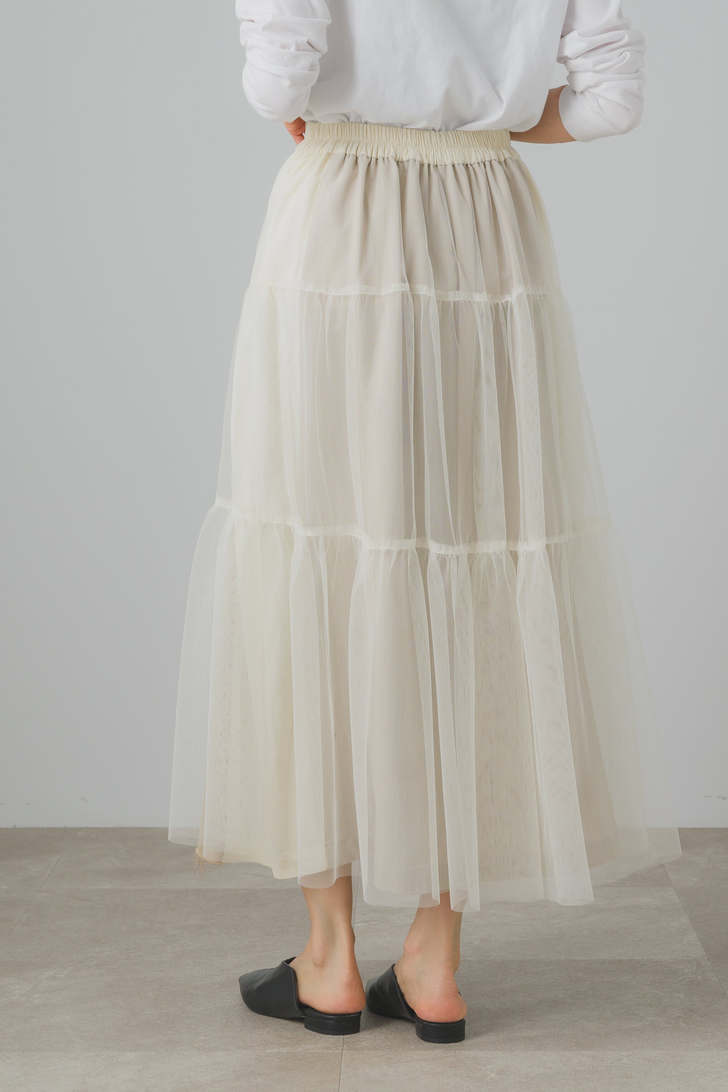 バックギャザースイッチスカート。
