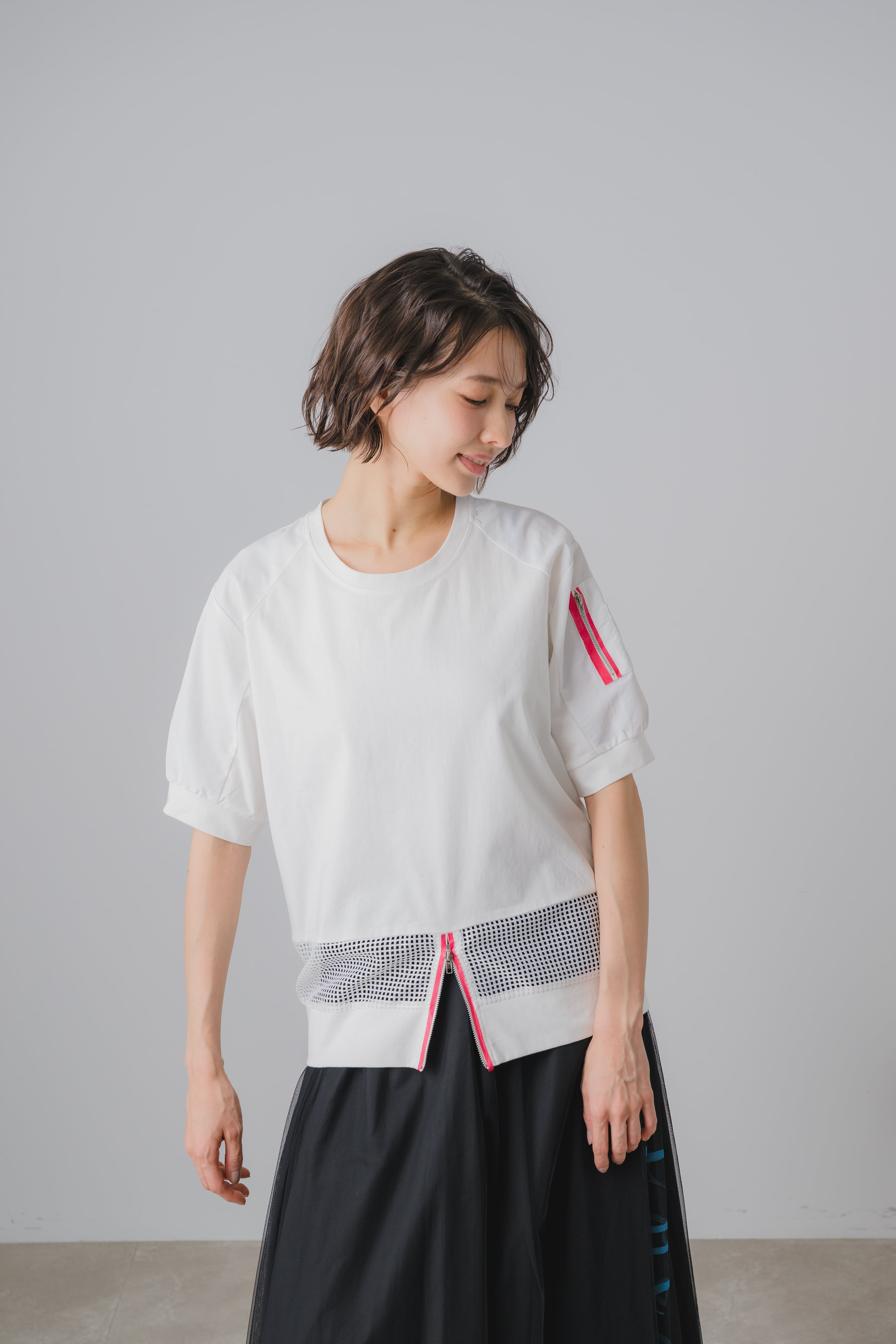 メッシュ素材を取り入れた、70060-4105 メッシュコンビTシャツ。